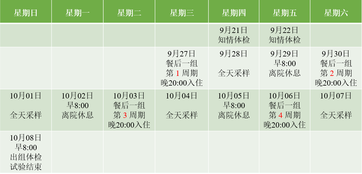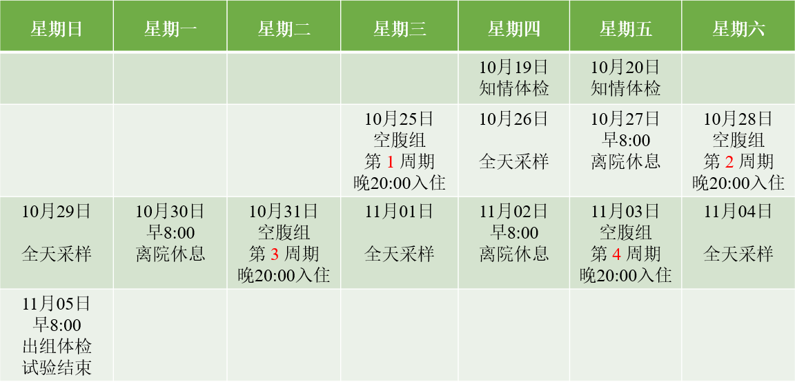 如果您符合以上条件,欢迎您报名参加本项研究,时间安排如下:
