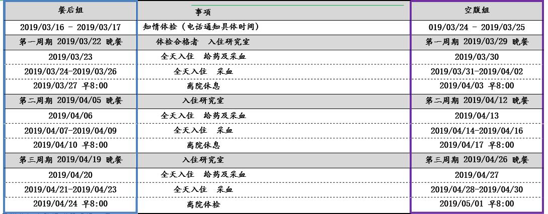 如果您符合以上条件,欢迎您报名参加本项研究,时间安排如下: